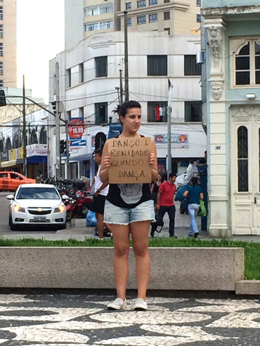 * Pictures: the performer Jossane Ferraz holding a sign written “I dance the reality when it dances.”